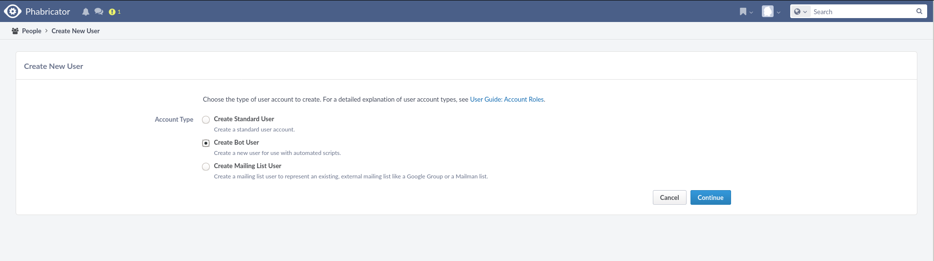 Screenshotbot will need a bot user to access Phabricator. As an Admin you can find this under People app: