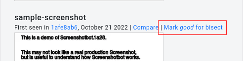This will take you to a page where you can select a "good" screenshot. This will be the starting point of your bisect: