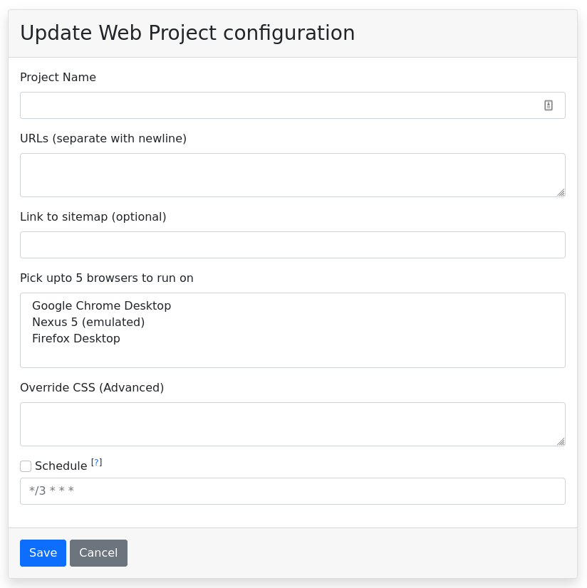 Note: Currently, we don't let you add Edge and Safari browsers yourself. Please contact us and we can enable these on your account. Our Firefox and Chrome browsers run on Linux by default. Please contact us if you wish to render on Windows or Mac instead.